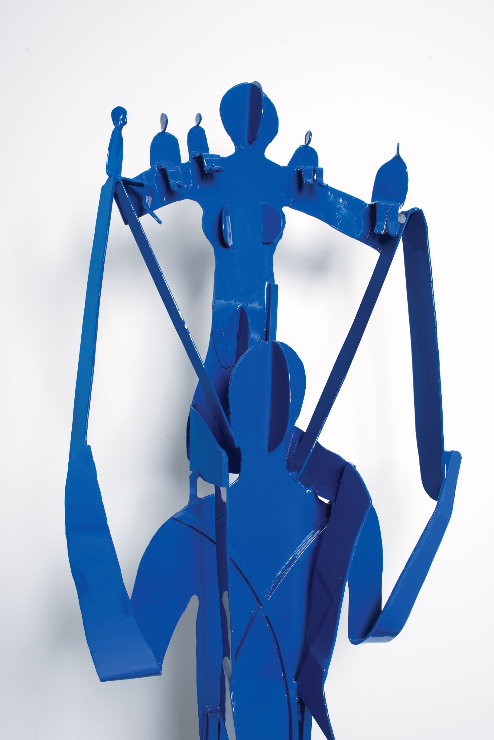 The entire composition is dominated by bold blue hues on the metal surface, seen as bright brushstrokes. This achieves an imposing, religious function of light.