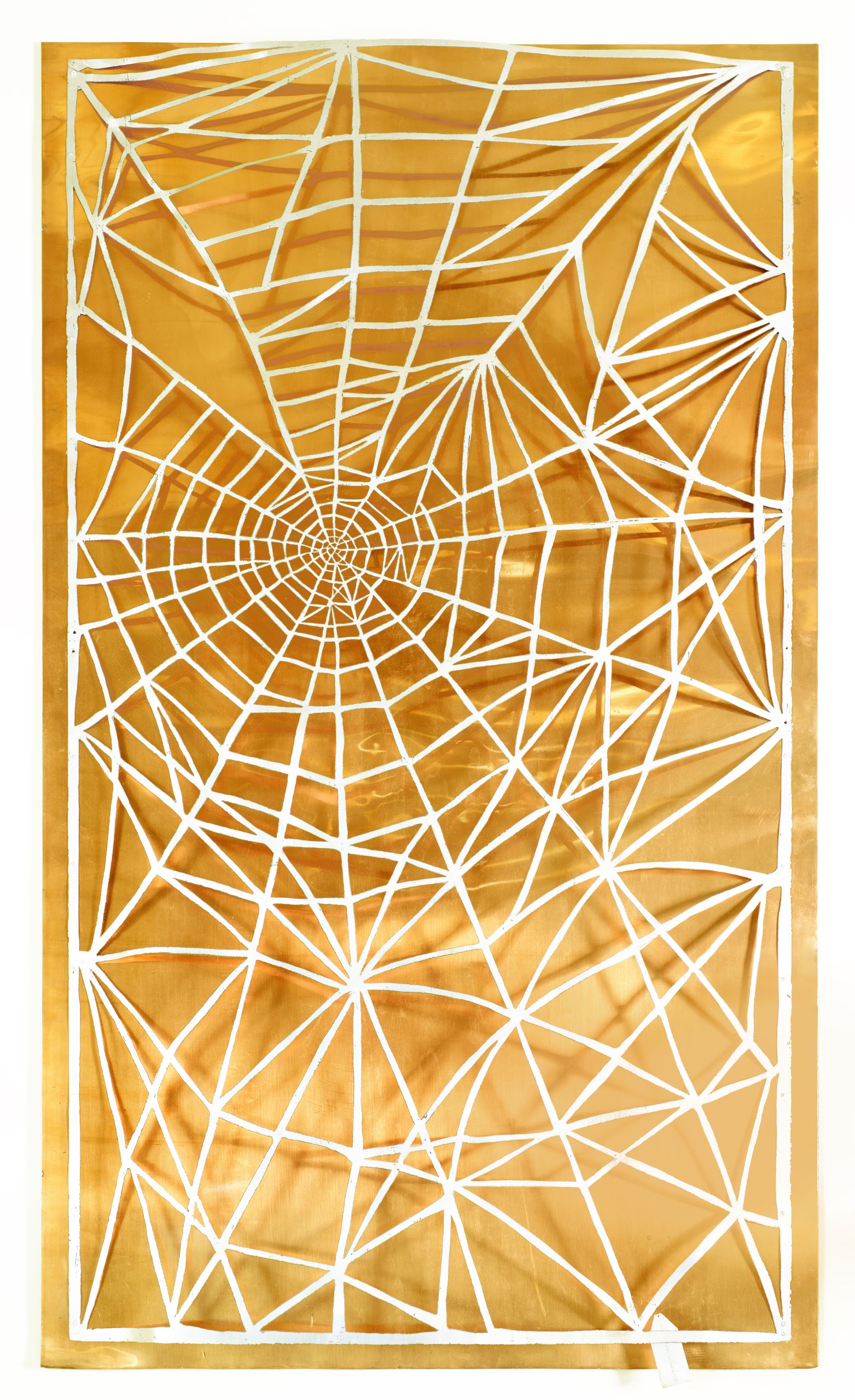 To avoid colour monotony, the artist adds tiny surfaces to the composition, painting them in red, yellow and blue.